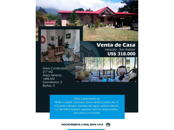 SE VENDE HERMOSA CASA EN EL TIROL, SAN RAFAEL DE HEREDIA.